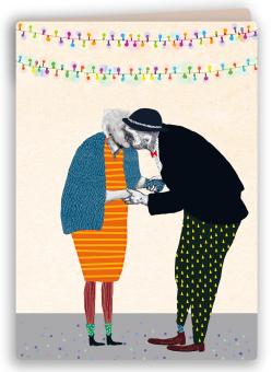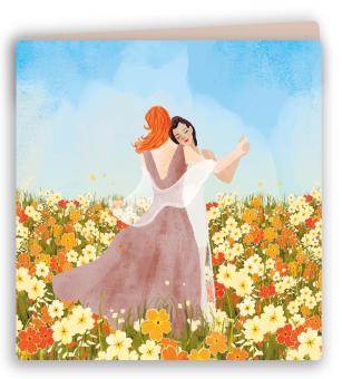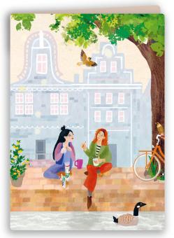 Dubbele kaarten 14 x 14 cm met een envelop.