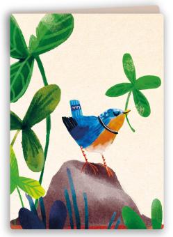 Onze kaarten worden waterloos gedrukt met gifvrije bio-inkt, op papier gemaakt van bladeren en stengels uit oogstafval.