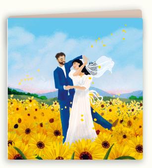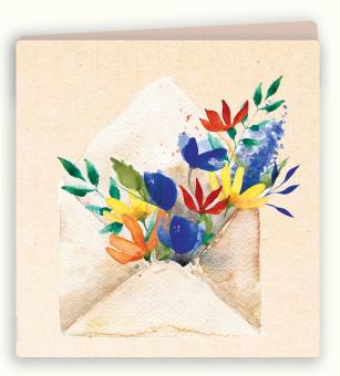 Vierkante postkaarten met een envelop € 1,95 per stuk.